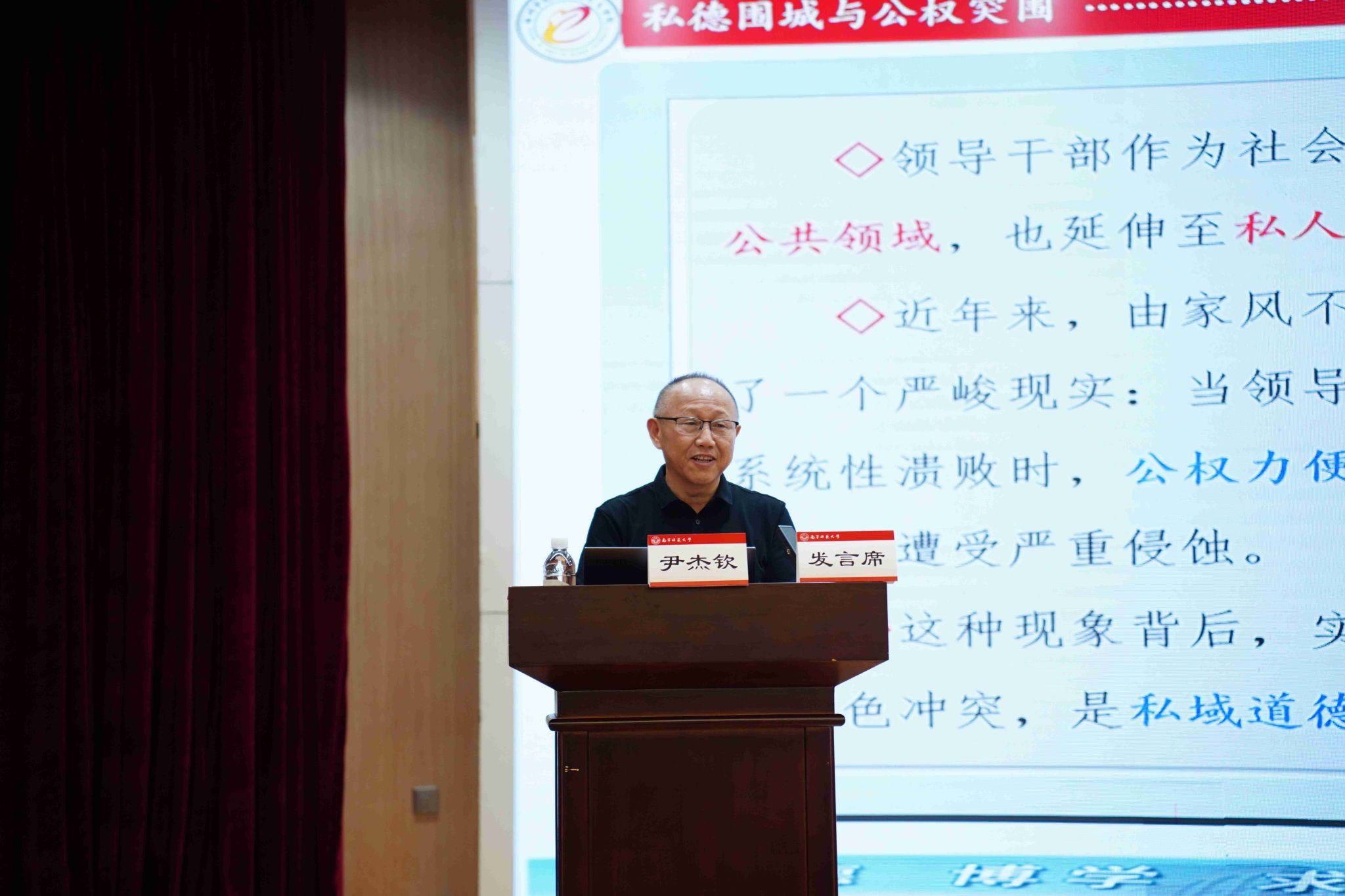 尹杰钦教授以“私德围城与公权突围:领导干部角色冲突及其治理”为题作了报告。