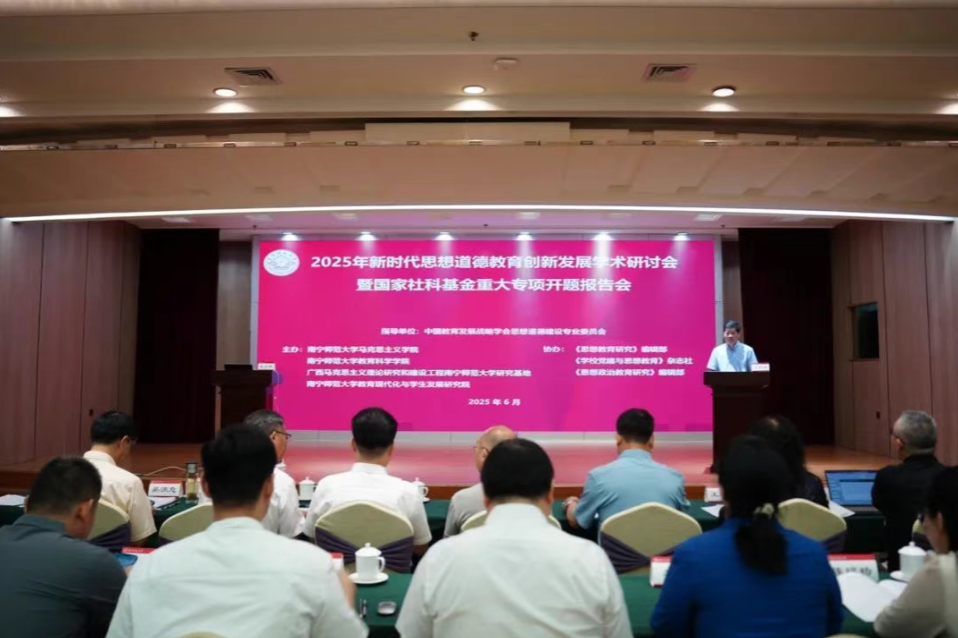 教育现代化与学生发展研究院联合主办,《思想教育研究》编辑部、《学校党建与思想教育》编辑部、《思想政治教育研究》编辑部共同协办的“新时代思想道德教育创新发展”学术研讨会于2025年6月14日在南宁成功举办。来自全国110多所高校的近140名专家学者、老师和研究生参加本次会议。本次研讨会设置了开幕式和主题报告以及两个单元的专家主旨报告,同时还特别设置了两个研究生分论坛。