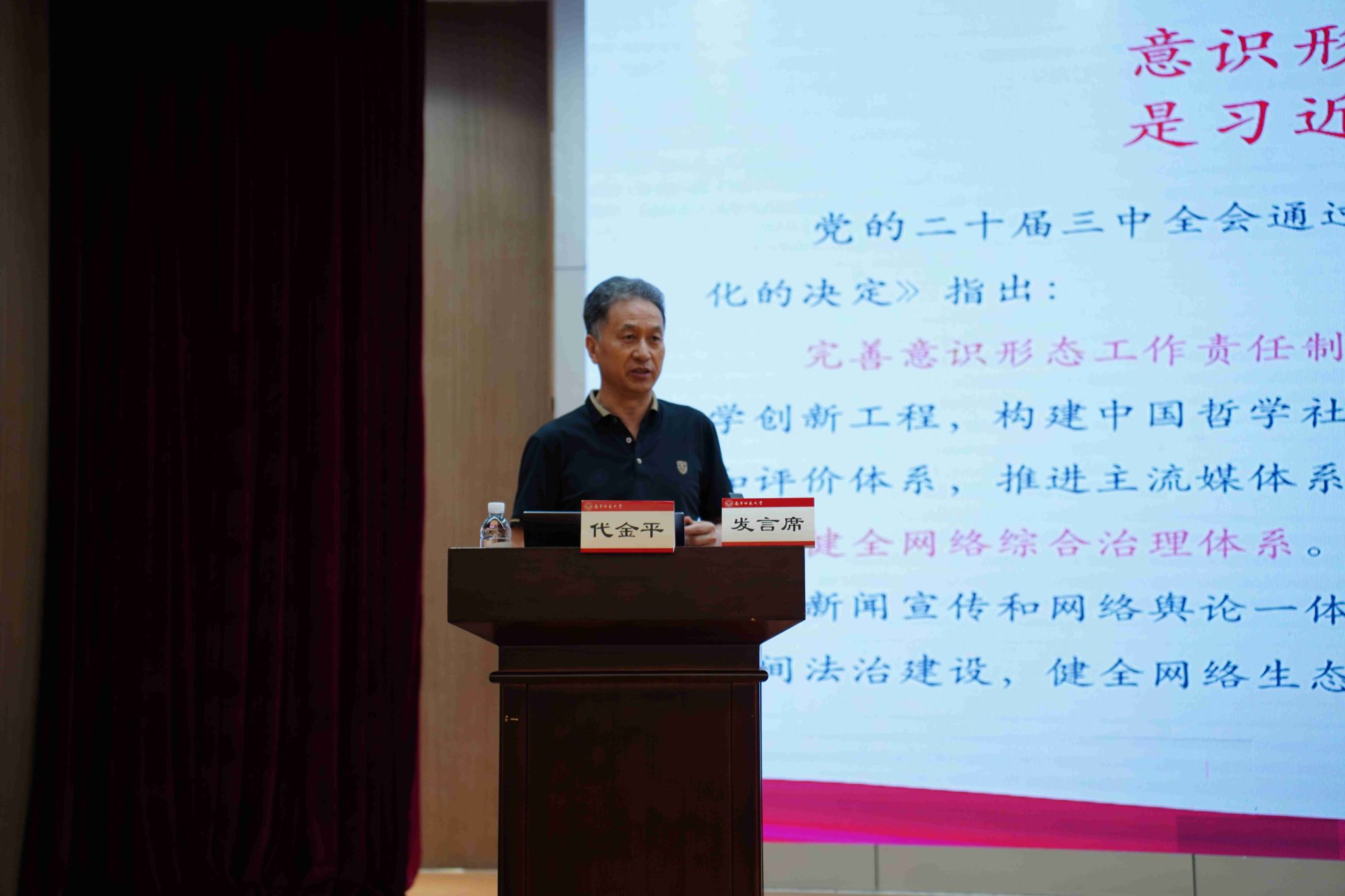 代金平教授以“生成式人工智能对意识形态领导权、管理权、话语权的影响及应对研究”为题作了报告;西南大学小黄书