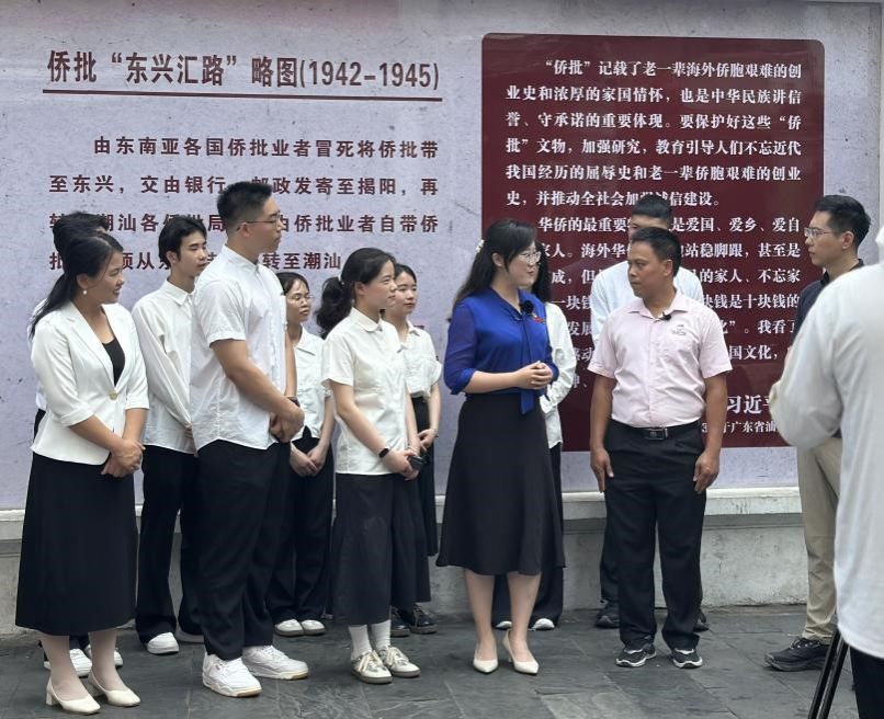 冯舒讌老师以《国门下的繁荣——中越命运共同体》为主题,带领大家与餐厅经营者、商铺售货员、展馆讲解员进行深入交流。在禧越餐厅,餐厅主人热情地与我们分享了中越饮食文化交融的故事;在国门街,经营者们忙碌的身影展现着边境贸易的繁荣景象;在侨批馆,一件件承载着老一辈海外侨胞创业史与家国情怀的文物,诉说着中华民族讲信誉、守承诺的优良传统。冯老师结合当地实际,生动讲述了中越两国在经贸合作与文化交流等方面的互联互通,让师生们深刻理解了习近平总书记4月14日访问越南时所强调的“构建具有战略意义的中越命运共同体,是历史的选择,是人民的选择”的深刻内涵。