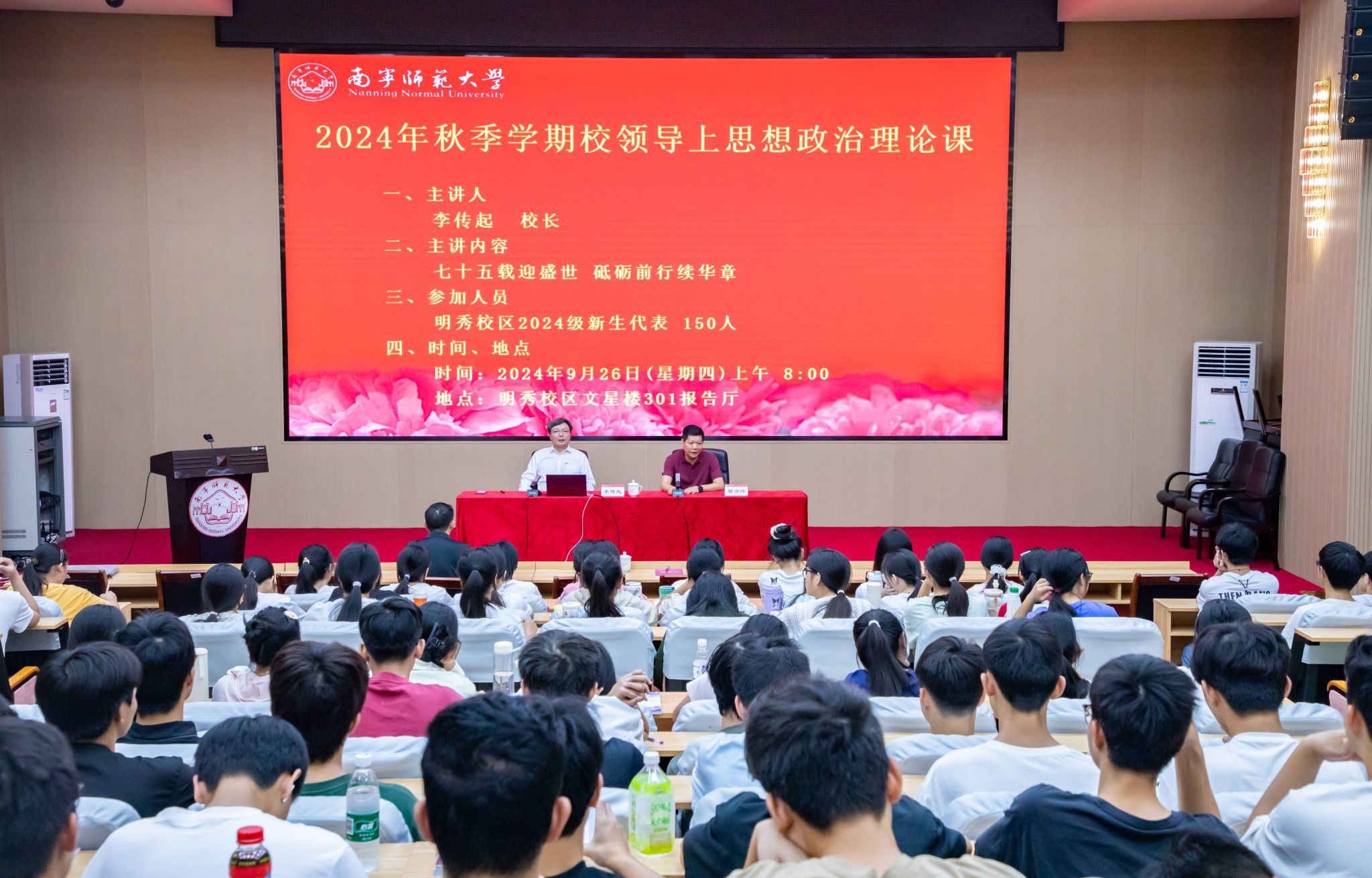 为深入推进“大思政课”建设,落实立德树人根本任务,把思想政治教育贯穿人才培养全过程。9月26日上午,李传起校长以“七十五载迎盛世砥砺前行续华章”为题,讲授2024年秋季学期“大思政课”。明秀校区各学院新生代表在文星楼301报告厅听课。本次“大思政课”由小黄书 院长曾令辉教授主持。