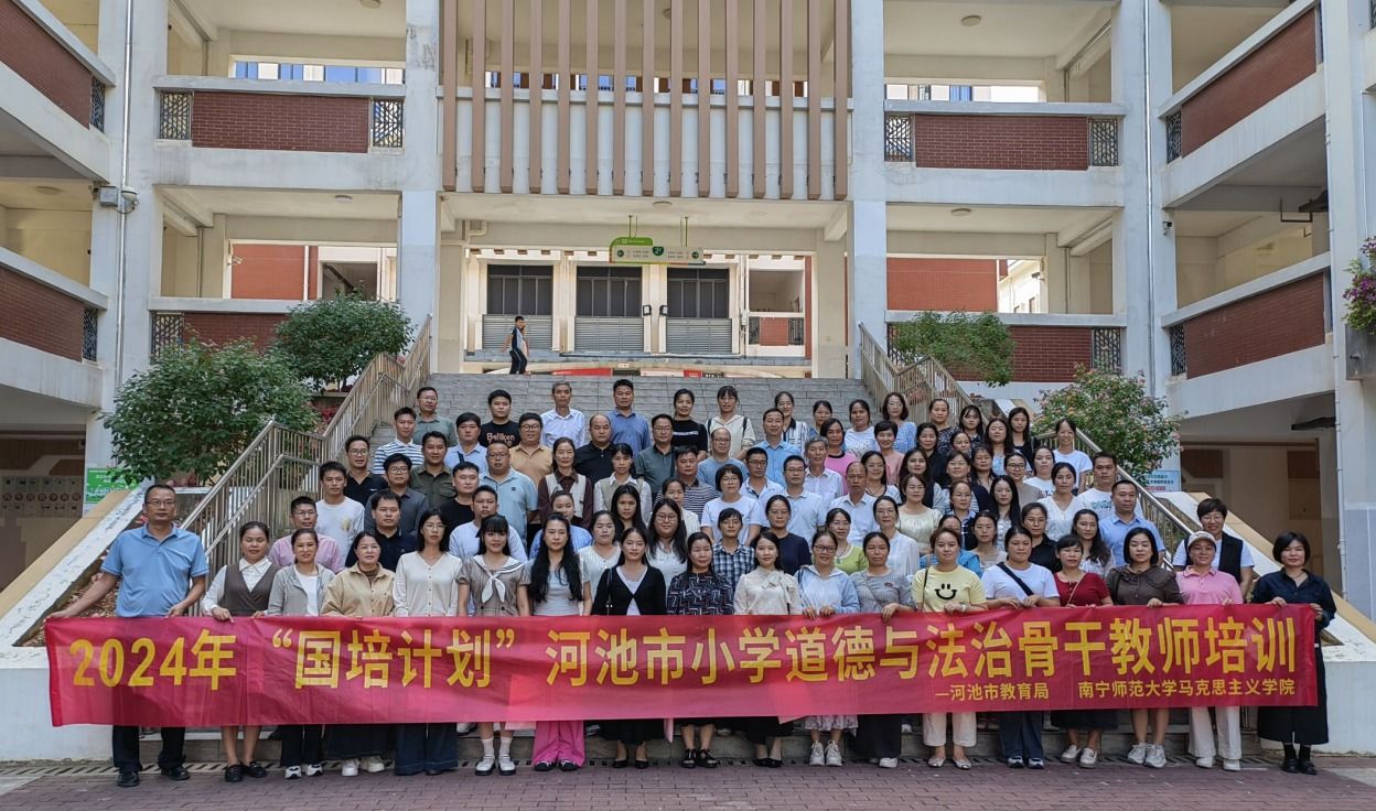 承办的2024年“国培计划”河池市统筹项目小学道德与法治骨干教师能力提升培训班在南宁举办。来自河池市各县区的90名小学道德与法治骨干教师参加本次培训。