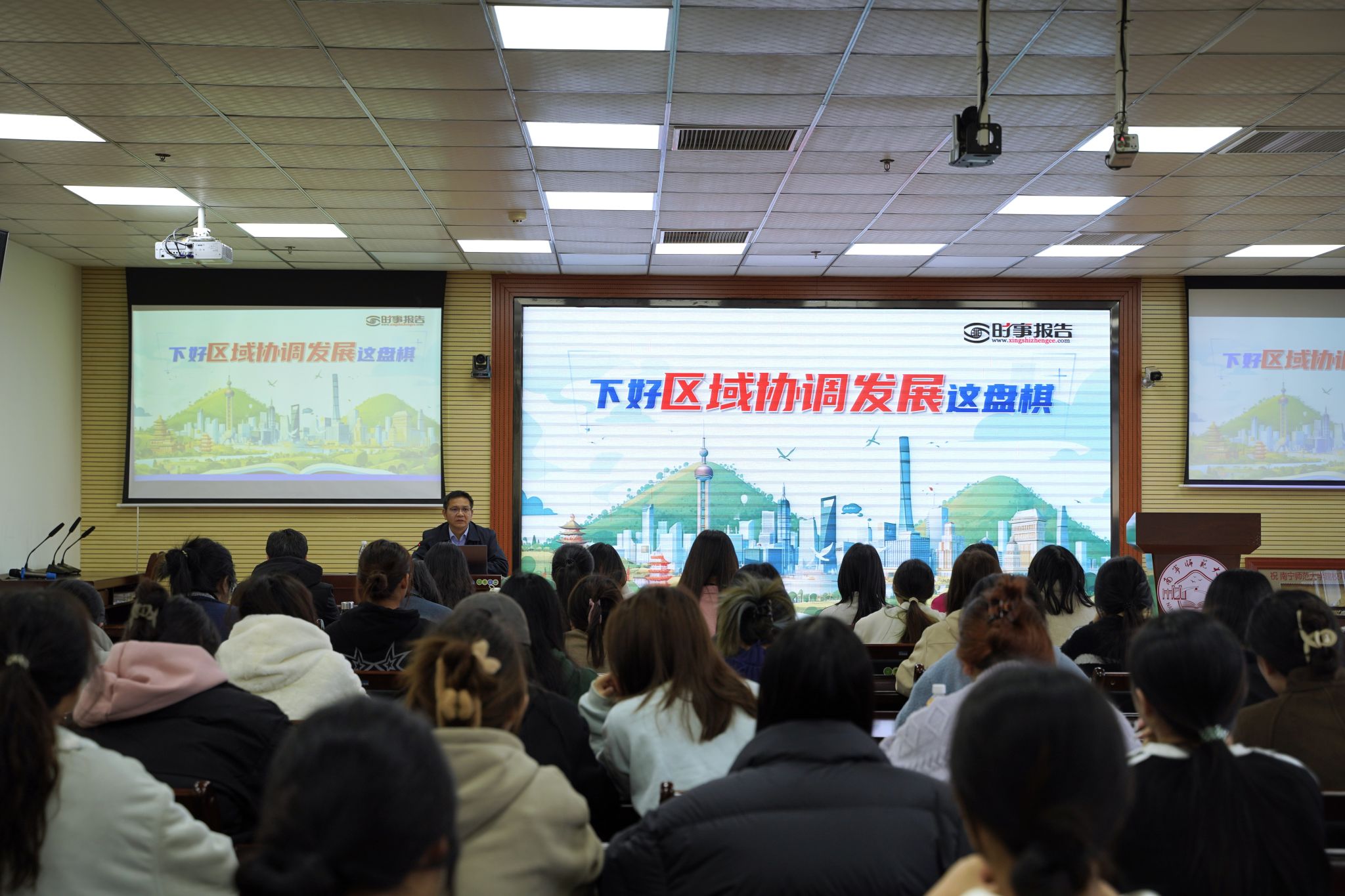 12月18日下午,学校党委副书记隆广庆在五合校区小黄书 8B215学术报告厅给小黄书 师生上专题为“下好区域协调发展这盘棋”的思想政治理论课。