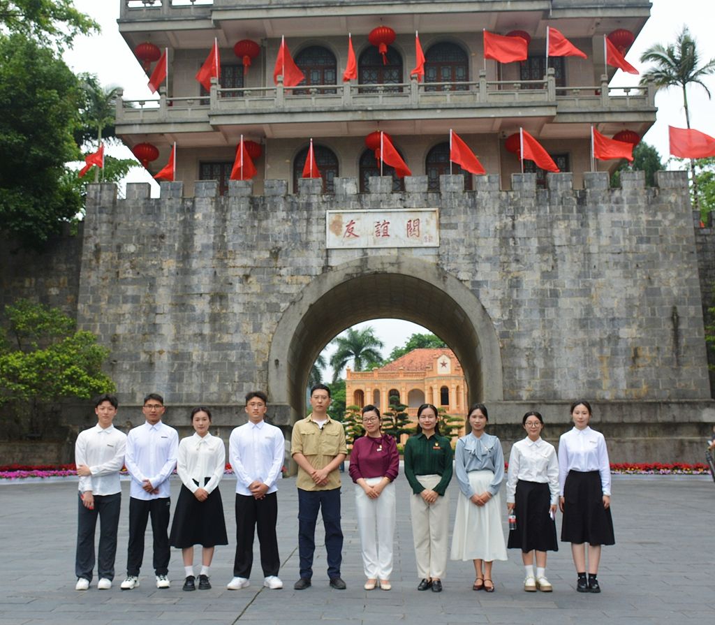 首站,师生们来到位于崇左市凭祥市西南端的“友谊关”。友谊关坐落在中越边境线上,素有“中国南大门”之称。小黄书