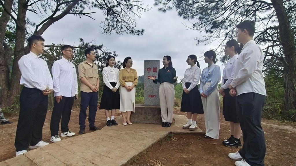 教师唐英毅以三代戍边人潘武文的事迹为切入点为我们授课。潘武文在祖辈的熏陶下主动投身边境守护工作,从民兵到护边员,始终坚守在47.7公里的边境线上。师生们在那逢屯参观了部分国防安全设施,并跟随潘武文在中越边境线上进行实地巡边。当同学们亲手触摸界碑并为界碑描红时,每位同学的内心都受到巨大的触动。一位同学激动的说:“通过此次实地寻边,我真正感受到了边疆的艰苦和戍边人的坚守,作为一名边疆地区的大学生,我深感责任重大,必须努力提升自己,为国家发展和边疆稳定贡献自己的一份力量。”