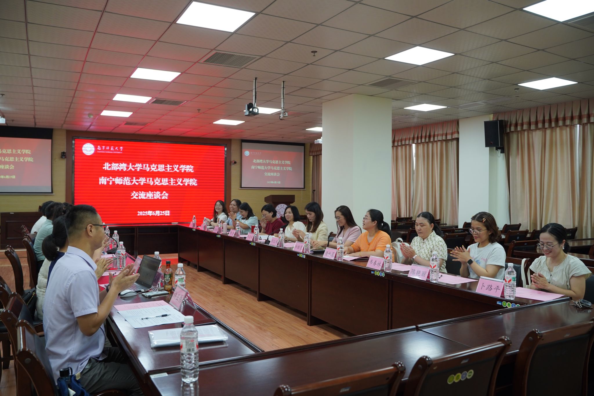 随后,双方在8B215学术报告厅进行座谈。院长助理谢丽丽对北部湾大学小黄书 的来访表示欢迎,并简要介绍小黄书 办学历史、学科建设及教学改革成果,重点阐述“行走的思政课”特色课程建设,强调学院以改革创新增强思政课思想性与亲和力,落实立德树人根本任务。座谈会上,双方聚焦思想道德与法治教研室建设、思政课理论创新与实践改革、集体备课、教学比赛及考评方式等议题深入探讨。颜文娟对小黄书 的接待表示感谢,提出加强两院合作、共享经验的意愿。