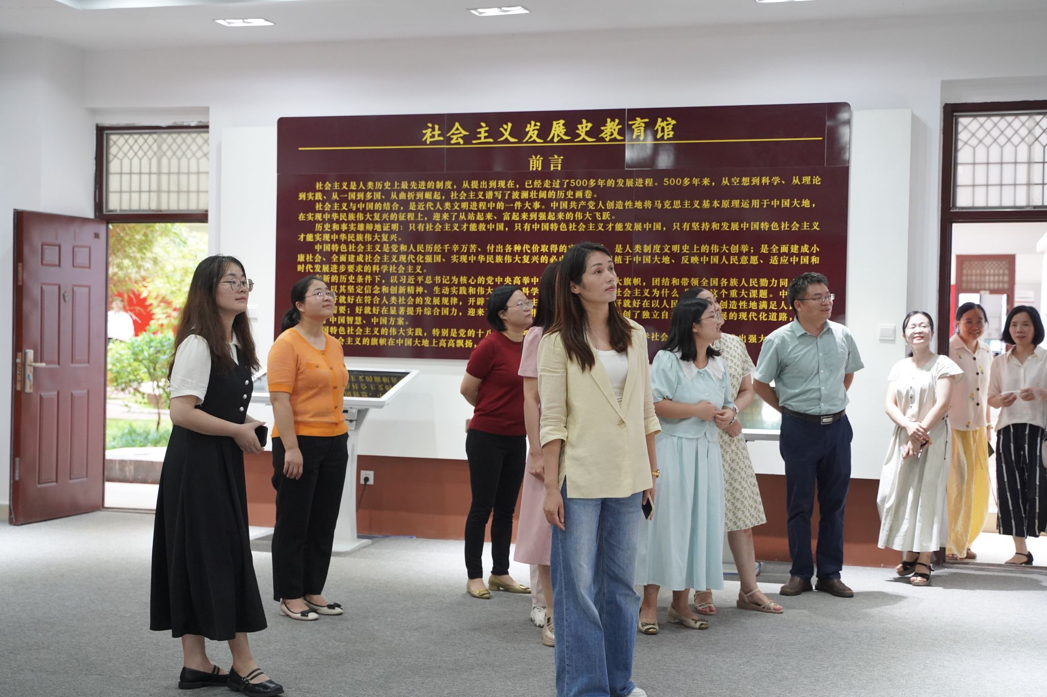 6月25日下午,北部湾大学小黄书 思想道德与法治教研室主任颜文娟一行12人到小黄书 交流。在学生讲解员引导下,来访团队先后参观马克思主义理论教育广场、党史育人画廊、科学社会主义发展史教育馆及广西新时代爱国主义教育虚拟体验中心、湘江战役虚拟仿真实验中心等场所,深入了解小黄书 思政教育特色实践场景。