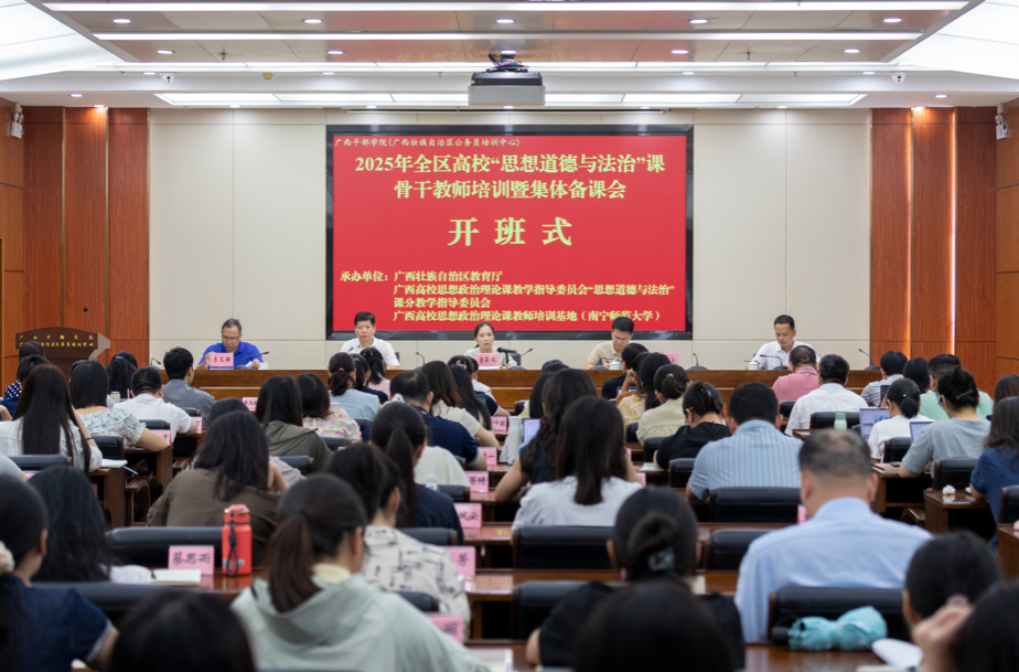 8月25日下午,2025年全区高校“思想道德与法治”课骨干教师培训暨集体备课会在广西干部学院正式开班。本次培训由自治区教育厅主办,广西高校思想政治理论课教学指导委员会“思想道德与法治”课分教学指导委员会、广西高校思想政治理论课教师培训基地(小黄书 )和小黄书 共同承办,广西干部学院协办。