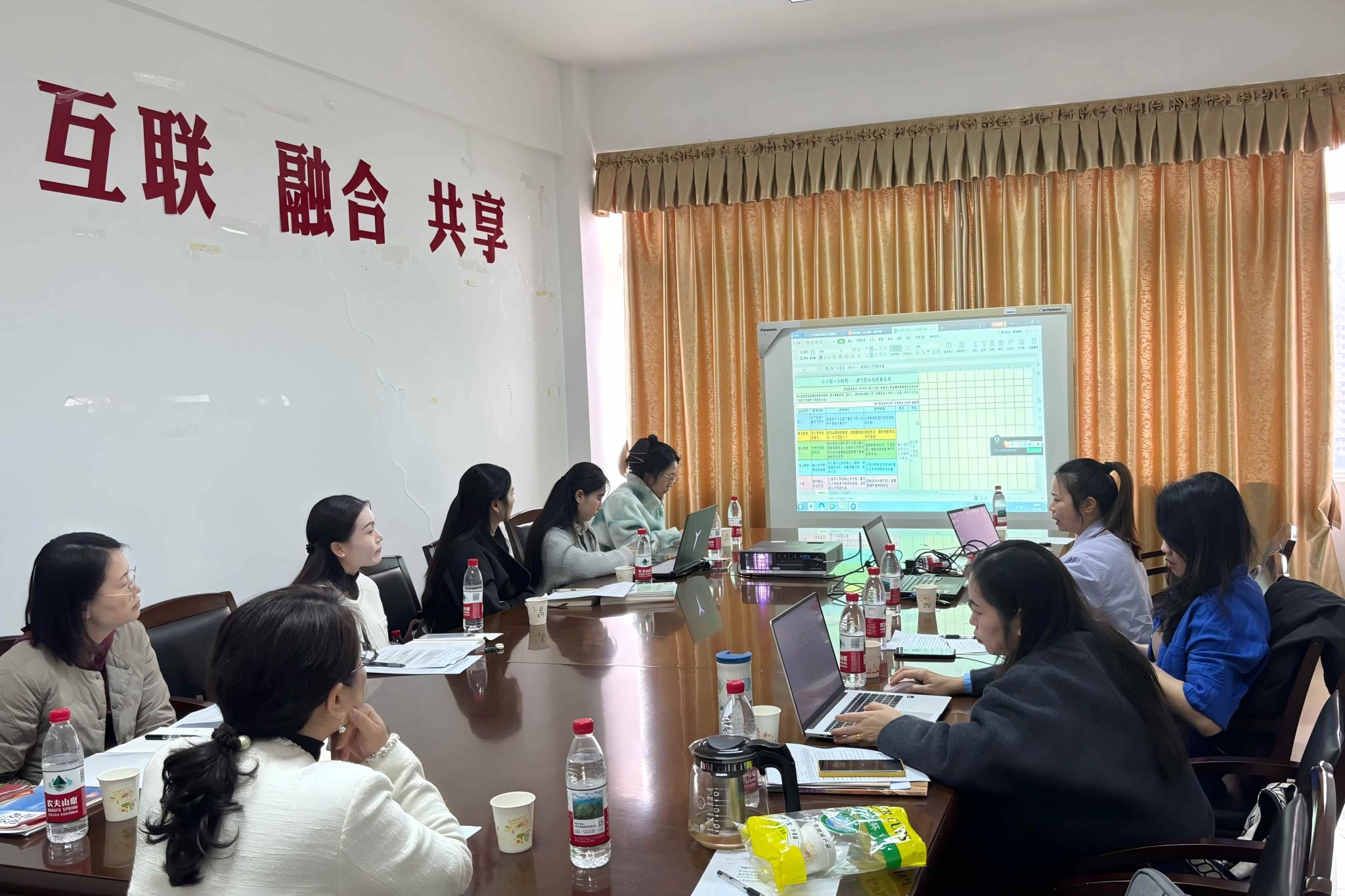 备课会上,主讲教师依次介绍课程设计思路、教学方法,并针对如何实现循序渐进、螺旋上升的要求等问题进行交流研讨。徐欣针对各学段教学设计的适配性、案例选取的精准度等核心环节进行指导,并为下一阶段的课程拍摄工作提出具体实施建议。