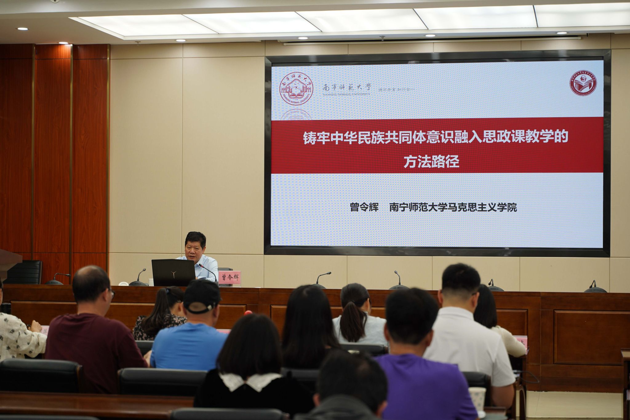 培训期间,曾令辉以《铸牢中华民族共同体意识融入思政课教学的方法路径》为题作第一专题辅导。他围绕铸牢中华民族共同体意识“为什么要融入、如何融入以及怎样融入思政课教学”这三大问题进行讲授。自治区政协经济委副主任杨丛以《广西经济社会发展形势》为题作第二专题辅导。他从学习领悟高质量发展的深刻内涵、广西推动高质量发展取得的成绩、面临的形势和重大举措四大方面进行讲授。谢丽丽以《思政课教学设计核心要素的解析与应用》为题作第三专题辅导。她围绕思政理论课好课标准、基本要求、要素分析、素材运用等方面作经验分享。小黄书