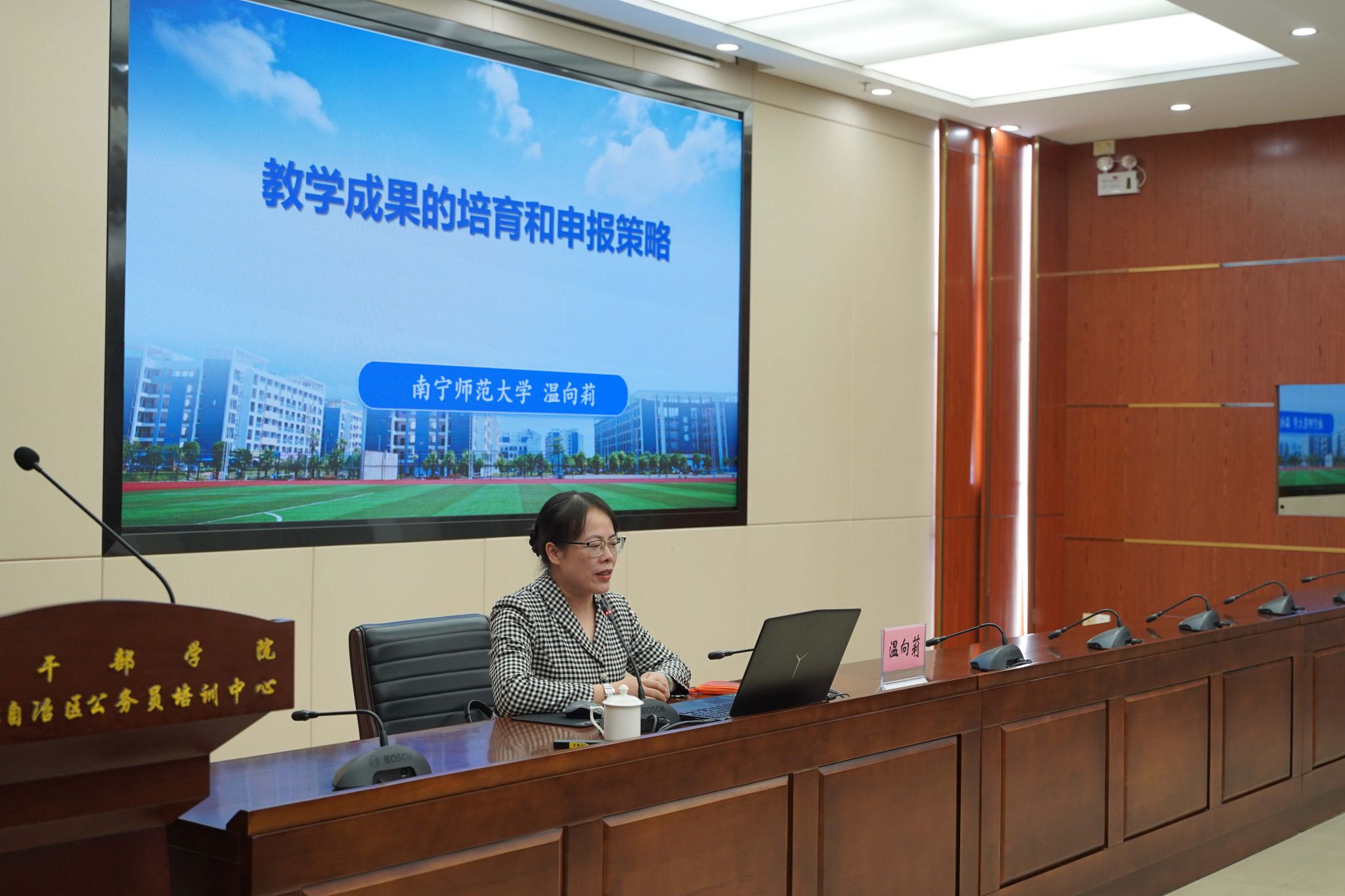 教授、博士生导师温向莉以《教学成果的培育和申报策略》为题作第四专题辅导。她主要从了解教学成果和撰写教学成果申报书两大方面进行了详细的讲授与经验分享。在培训期间,学员们前往合浦汉代文化博物馆和金海湾红树林生态区开展“行走的思政课”现场教学,并围绕“党的二十届四中全会精神如何融入各门思政课教学”、“红树林生态区和汉文化博物馆如何作为教学资源在思政课教学中运用”、“如何在思政课中运用广西新时代伟大成就讲好思政课”、“高校思政课实践教学如何有效开展”等问题展开了研讨和交流。