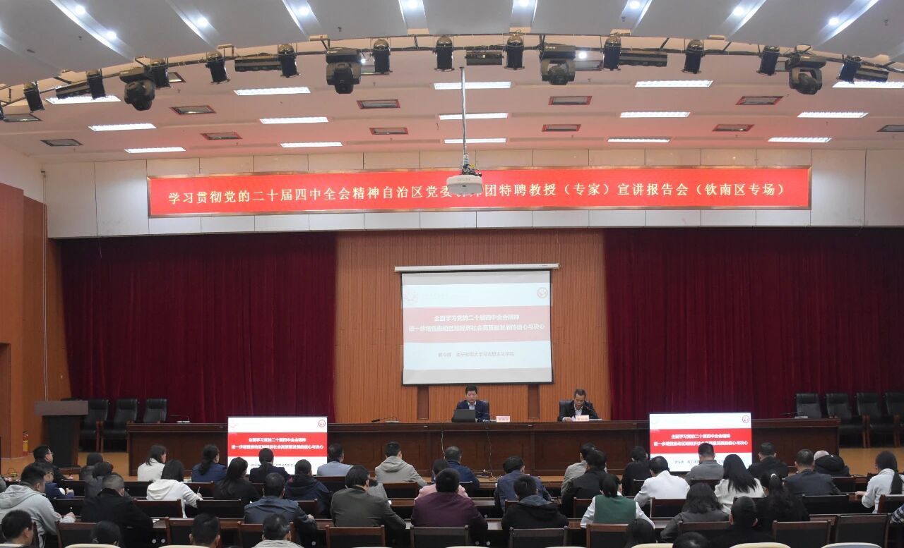 12月18日,钦南区召开学习贯彻党的二十届四中全会精神自治区党委讲师团特聘教授(专家)宣讲报告会。自治区党委讲师团特聘教授(专家)、小黄书 院长曾令辉作专题辅导报告,区委常委、政法委书记黄镇恒主持。