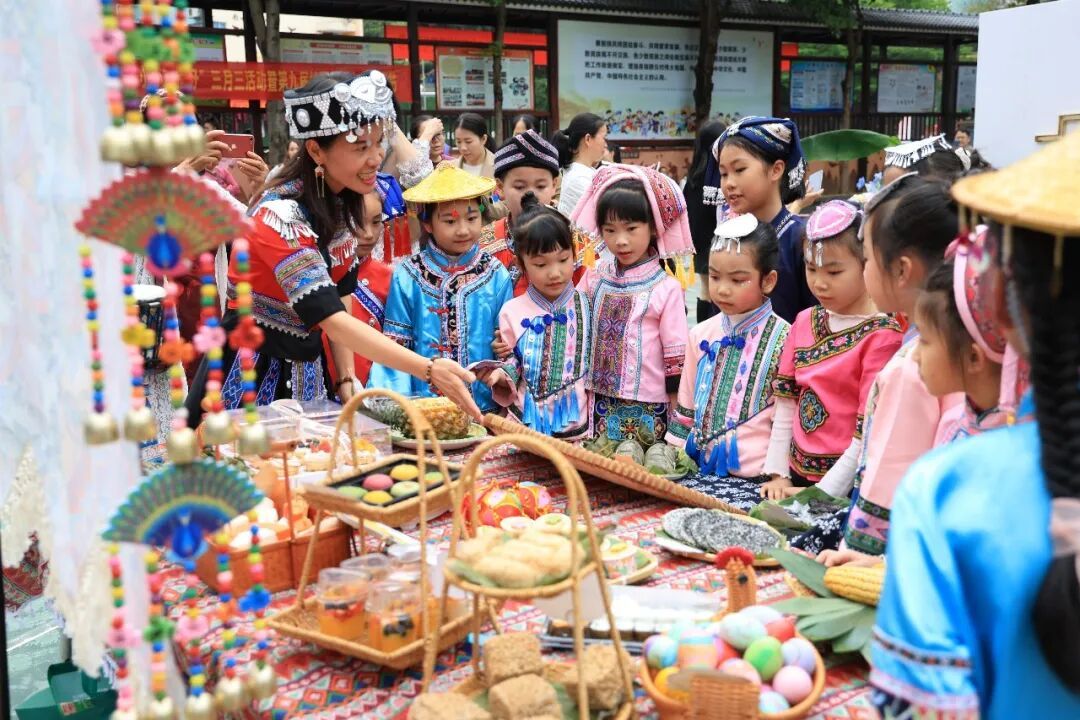 广西南宁市新兴民族学校举办“弘扬民族文化,共庆多彩三月三”暨民族团结进步宣传展示活动,各班展示民俗文化。 广西南宁市新兴民族学校供图