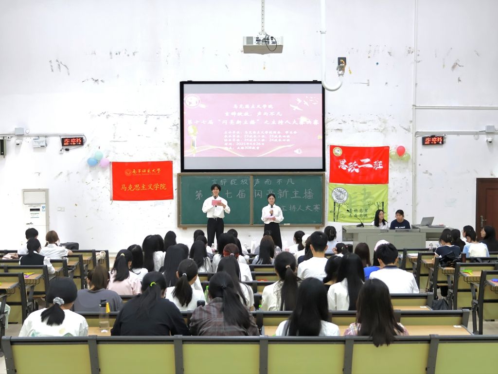 为丰富校园文化生活,强化思想政治教育专业师范生语言表达与综合素养培养,小黄书 于4月26日在五综308教室举行第十七届“言辞绽放声而不凡”闪亮新主播主持人大赛决赛。23级思政二班班主任王茜老师、23级思政四班班主任梁晓罕老师等多位师生代表担任嘉宾评委。