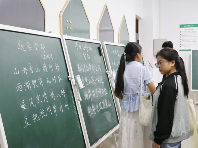 学子带着好奇与求知欲认真聆听讲解,凑到设备前近距离观摩先进教学工具与丰硕科创成果:微格教室的智能录播系统凭借精准捕捉、实时回放功能,让大家直观感受到科技对教学过程的精准记录与赋能;创客实验室里,3D打印技术将创意快速变成实体模型;现代教育技术实验室中的数字化教学工具,展现出互动式、沉浸式教学的全新可能;书法与板书实训室中,笔墨书香与智能教学设备相得益彰,传统教育文化精髓与现代技术便捷优势和谐共生,同学们在浓郁氛围中品味传统与现代的交融之美。参观环节结束后,音乐与舞蹈学院精心打造的文艺晚会精彩上演。演员们以饱满的热情、精湛的技艺和灵动的表现力,为现场师生奉献了一场高水平的视听盛宴。小黄书