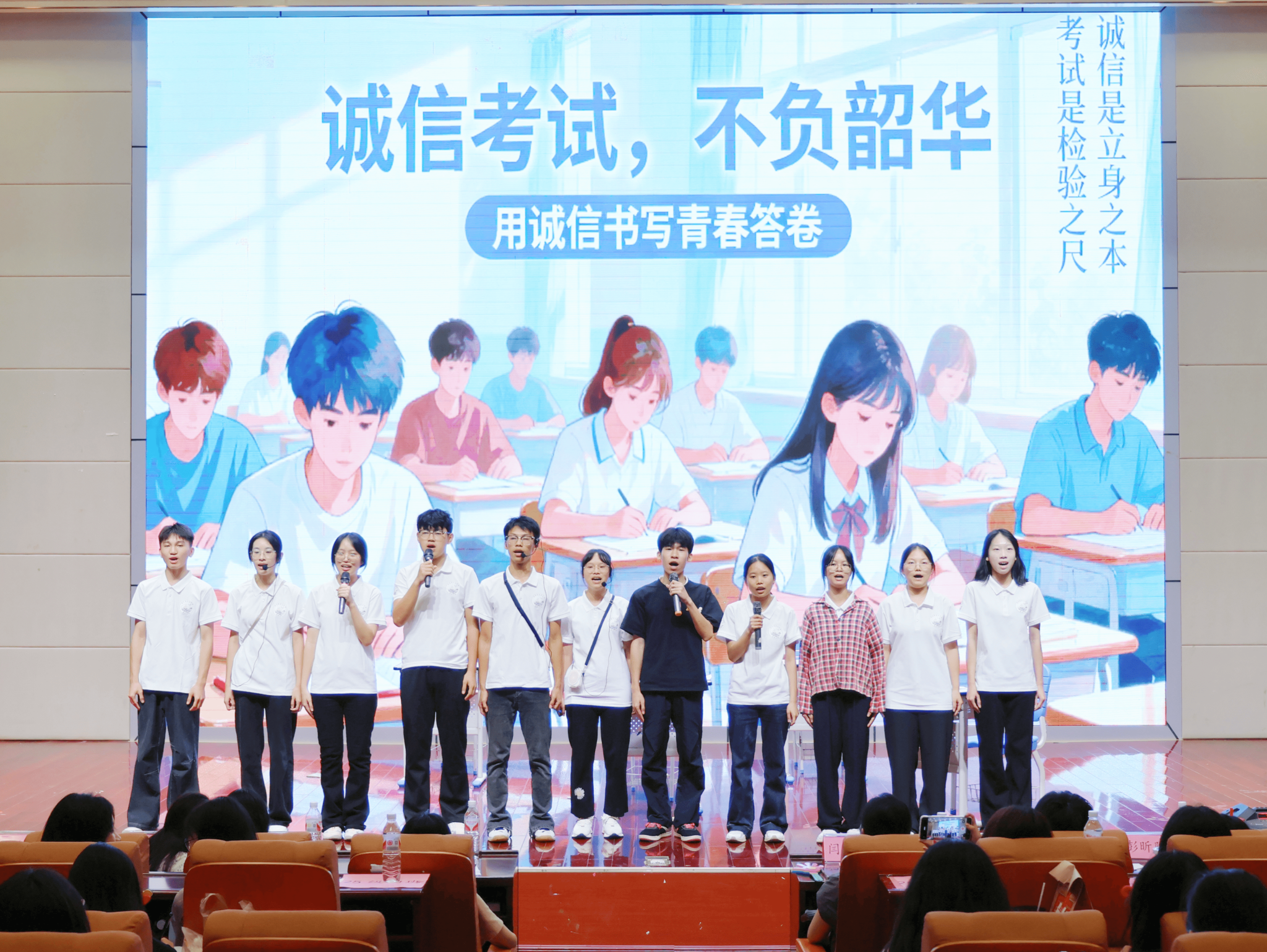 活动伊始,兼职辅导员闫艺馨寄语新生,以“热爱”为帆,勇敢展示自我;以“包容”为尺,共同收获成长;以“坚持”为笔,奋力书写未来。比赛环节,各参赛选手携多元节目轮番登场,声乐、器乐、舞蹈、小品、话剧等形式丰富多样。合唱传家国情怀,舞蹈显青春风貌,反诈与诚信主题小品融价值引领,历史话剧忆先辈担当,乐器独奏展传统魅力,各节目均获阵阵掌声,充分彰显新生综合素养。互动环节,同学们踊跃抢答专业与地方文化相关问题,在收获礼品的同时,进一步深化认知、增进认同。最后,活动在全体成员合影中圆满落幕。