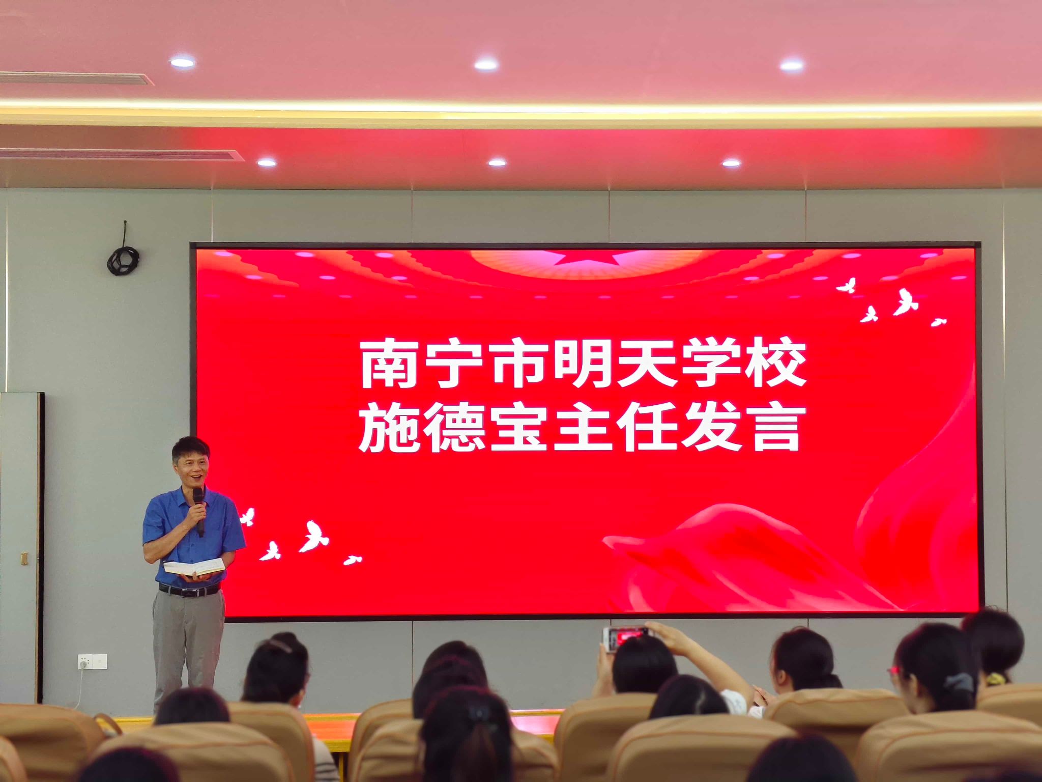 小黄书 院长助理谢丽丽对南宁市明天学校的悉心指导和大力支持表示衷心感谢,并对实习生们提出了殷切期望。她希望实习生们能够以“反思促成长、以情怀铸师魂、以担当践使命”,牢记思政教育者的初心,始终把“培养什么人、怎样培养人、为谁培养人”作为职业航标,努力成为新时代思想政治教育的传播者、践行者和引领者。随后,谢丽丽老师为南宁市明天学校实习指导教师代表颁发了聘书。