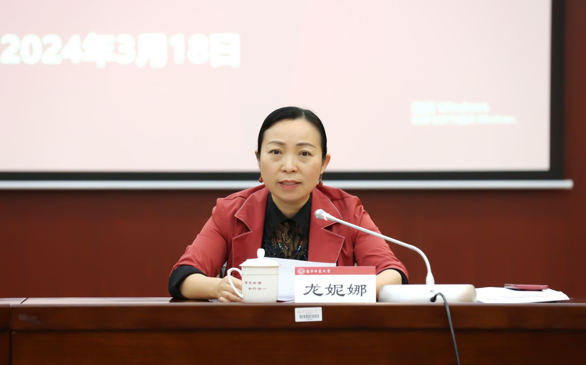 负责人和思政课教师代表参加研讨会,会议由副校长龙妮娜主持。
