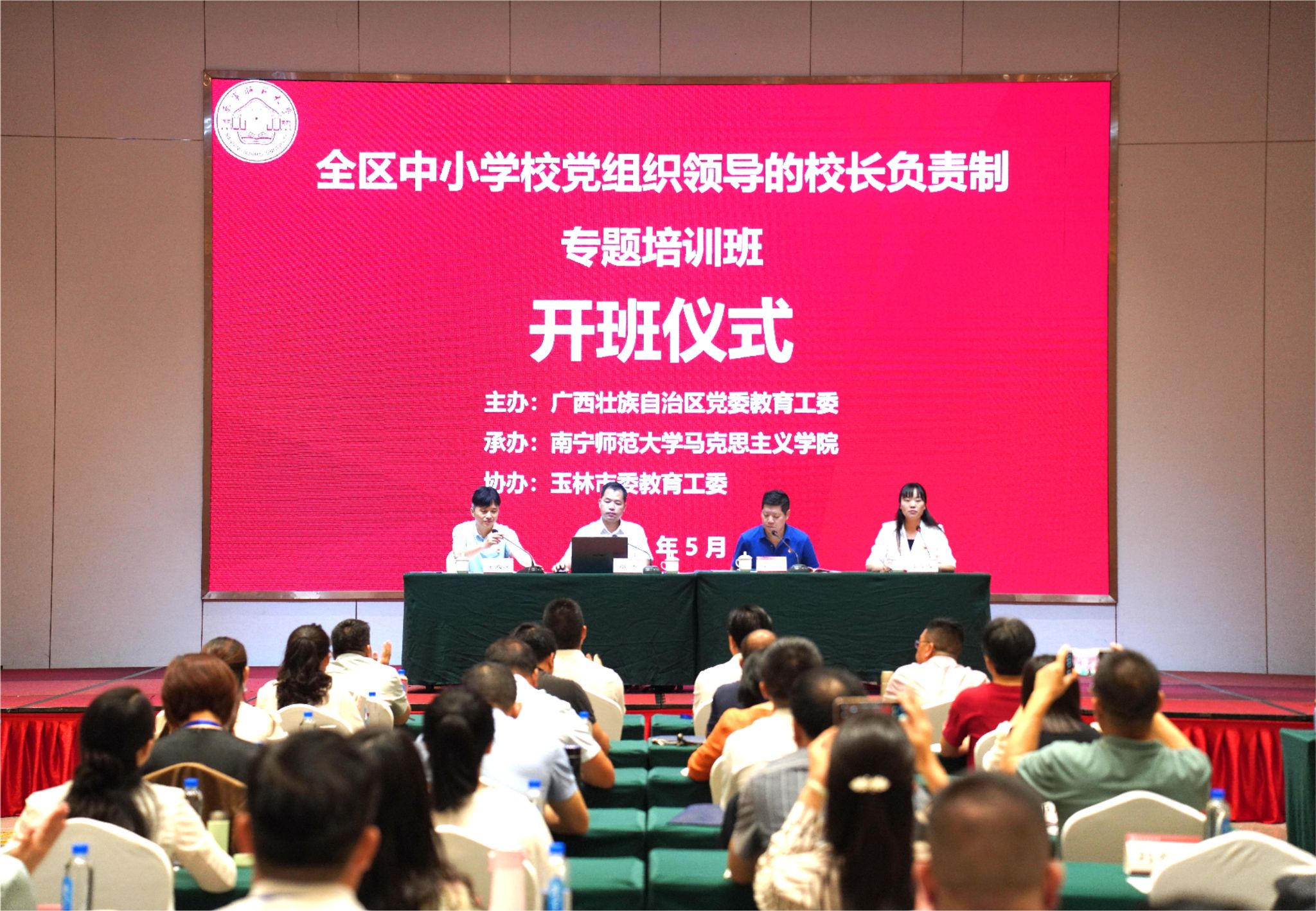 承办及玉林市党委教育工委协办的全区中小学校党组织领导的校长负责制专题培训班在玉林顺利举办。来自全区部分市、县(市、区)党委教育工委专职副书记及中小学校党组织书记共100名学员参加了本次培训。自治区党委教育工委组织部三级调研员邓杰、小黄书