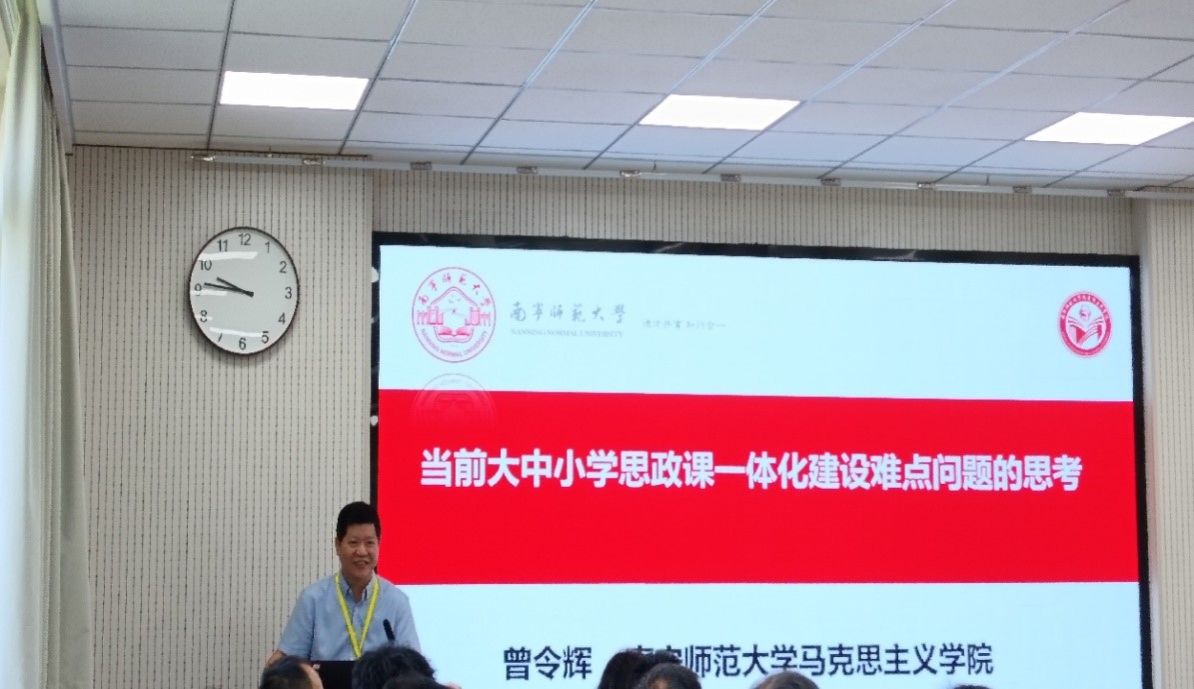 作为教育部大中小学思政课一体化共同体建设(广西)牵头单位,曾令辉院长受邀出席,并做了题为“当前大中小学思政课一体化建设难点问题的思考”主题报告,从如何推进构建“思政课有机共同体”的问题和如何真正实现“学段有效衔接”与“螺旋上升”的问题展开了论述,受到与会学者高度认可。