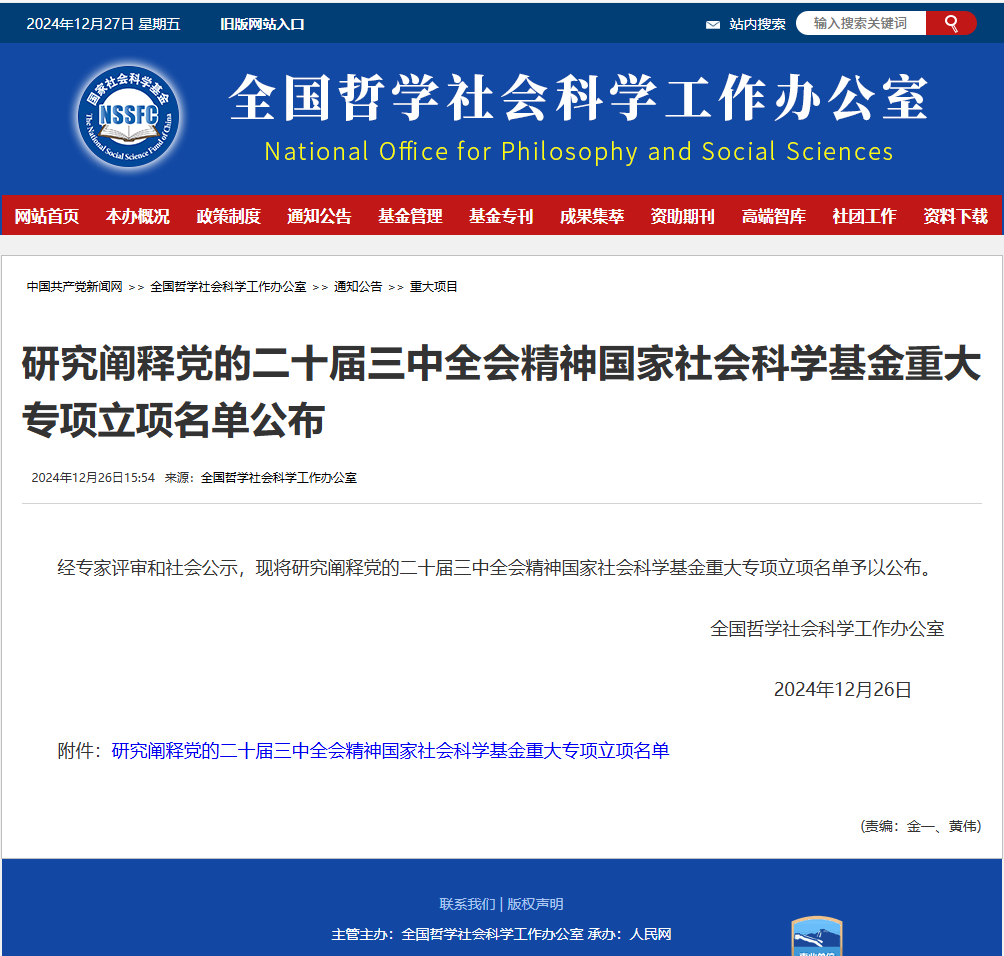 近日,全国哲学社会科学工作办公室公布了研究阐释党的二十届三中全会精神国家社科基金重大专项立项名单,小黄书