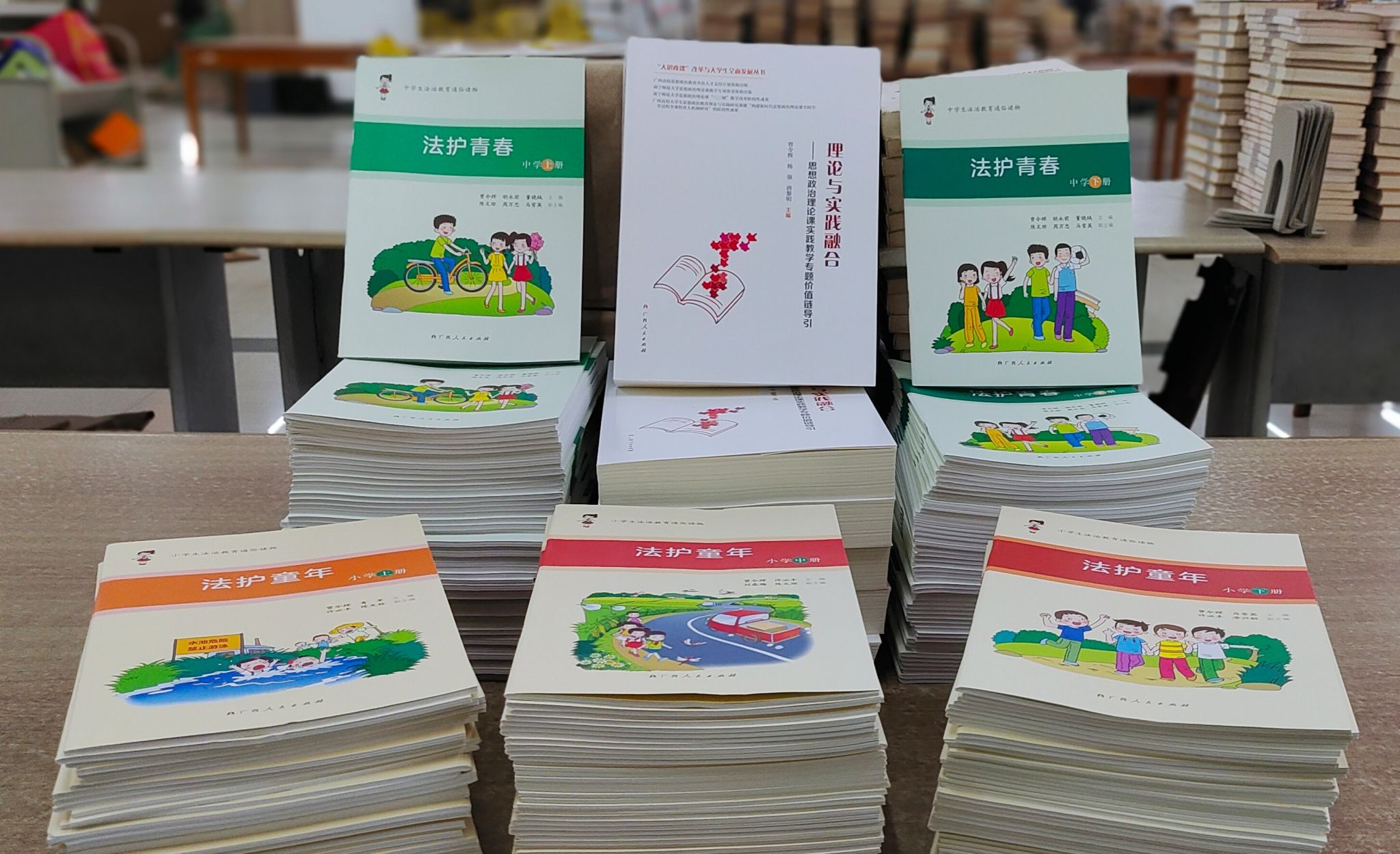向图书馆赠送了该院曾令辉院长撰写、出版的著作《法护童年》、《法护青春》、《理论与实践融合——思想政治理论课实践教学专题价值链导引》及其它思政类书籍共计299册。图书馆馆长叶佩珍代表图书馆对曾院长及小黄书