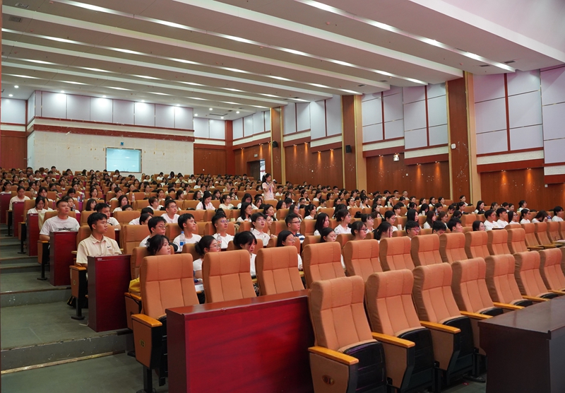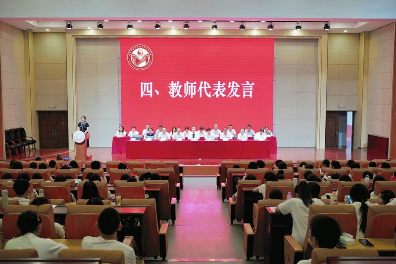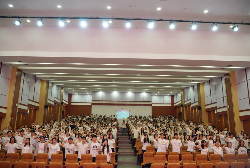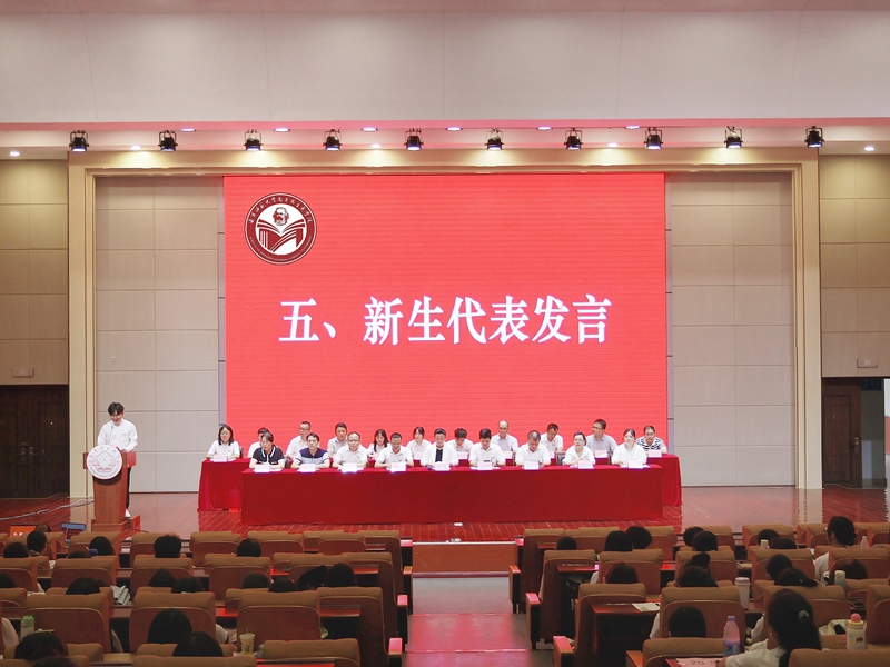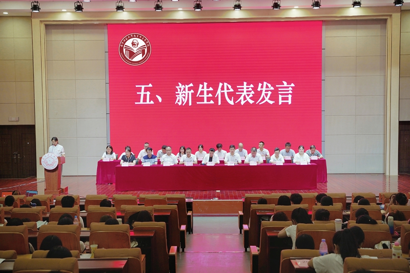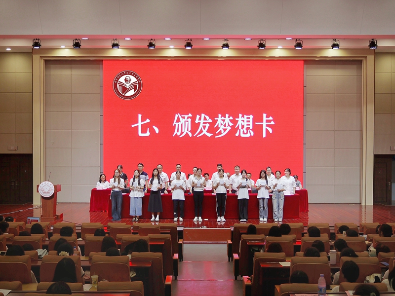 教师代表温向莉教授从“我是谁、从哪里来、到哪里去”三个哲学命题出发,引导学生深入思考人生定位和发展方向。她呼吁全体新生不负时代、珍惜光阴,在服务国家和人民的实践中实现人生价值。新生代表邓腾辉、赵诗画在发言中表示,将坚定理想信念,夯实专业基础,努力成为让党放心、爱国奉献、担当民族复兴大任的时代新人。随后,全体新生庄严宣誓,承诺为中华民族伟大复兴贡献青春力量。最后,学院领导和老师为新生发放梦想卡,引导新生对自己的职业发展进行科学的规划。