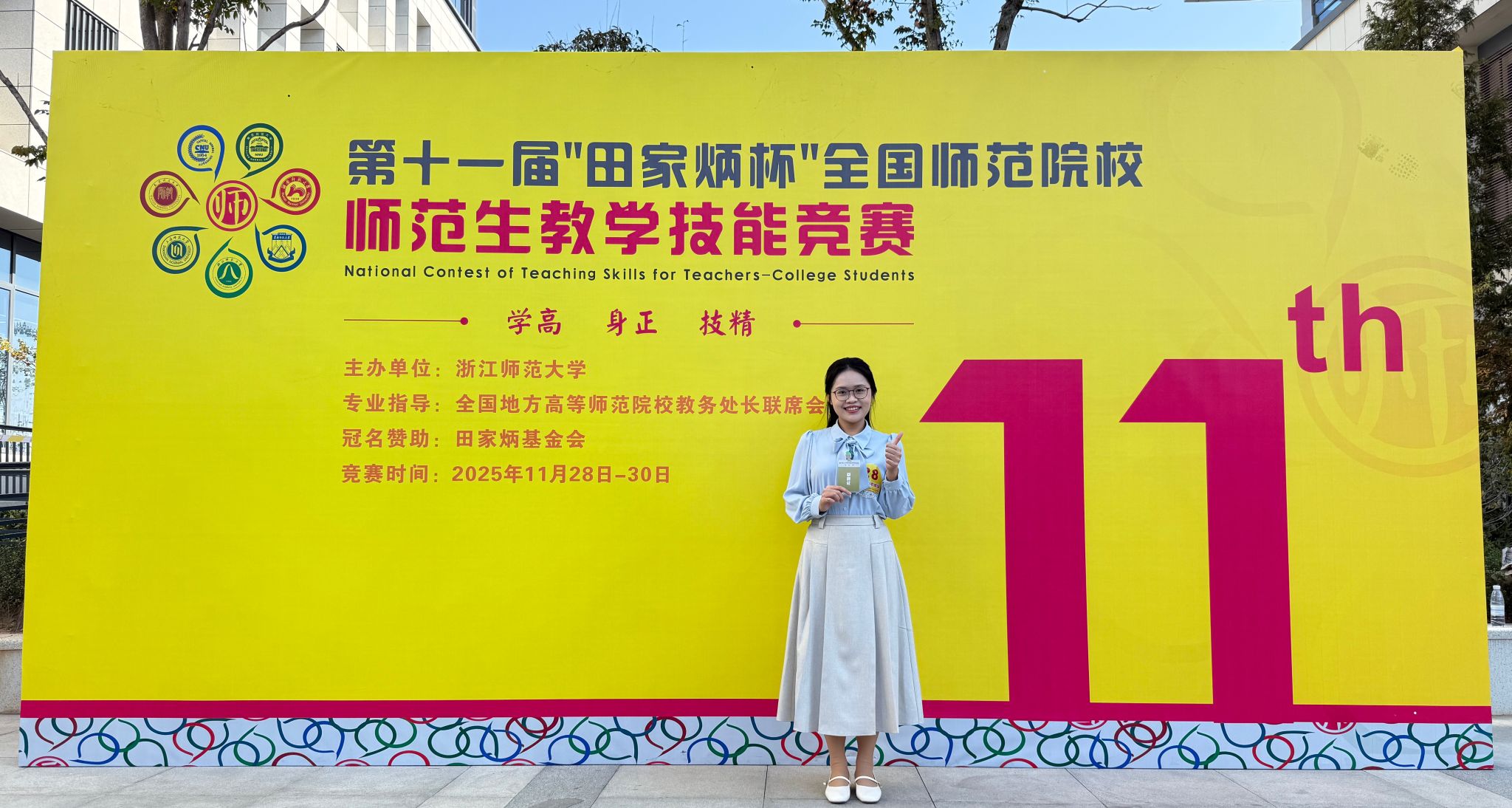 经过近半年的系统训练和反复打磨,谭章钰同学在比赛中展现出了良好的专业素养和扎实的教学技能,凭借稳定的发挥和从容的表现,最终在激烈的竞争中脱颖而出,荣获佳绩。