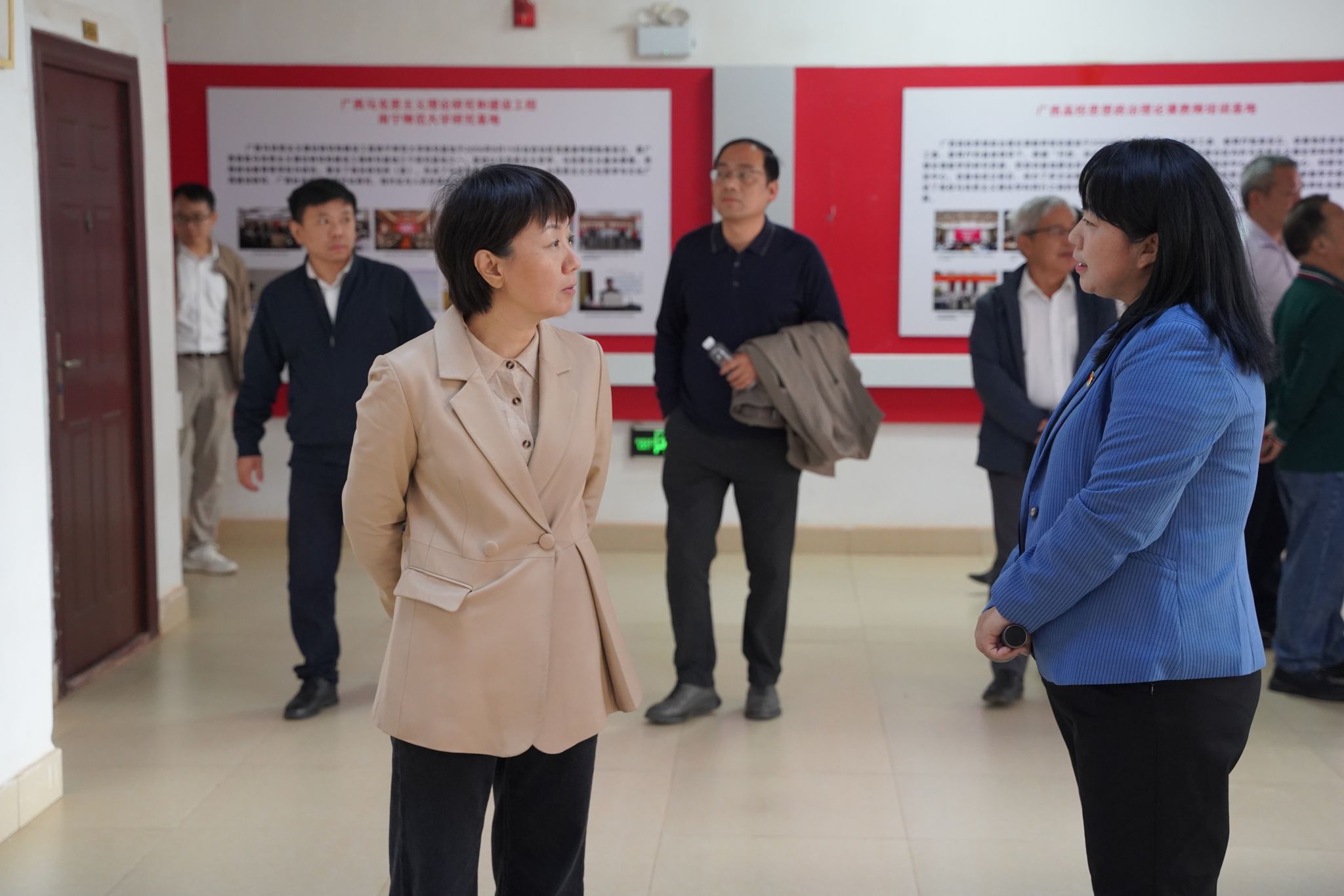 活动伊始,李玲带领大家实地参观了马克思主义理论教育广场、党史育人画廊、科学社会主义发展史教育馆及广西新时代爱国主义教育虚拟体验中心、湘江战役虚拟仿真实验中心等特色文化育人教学场所。在虚拟仿真体验中心,学员们沉浸式感受教学创新的独特魅力;在小黄书