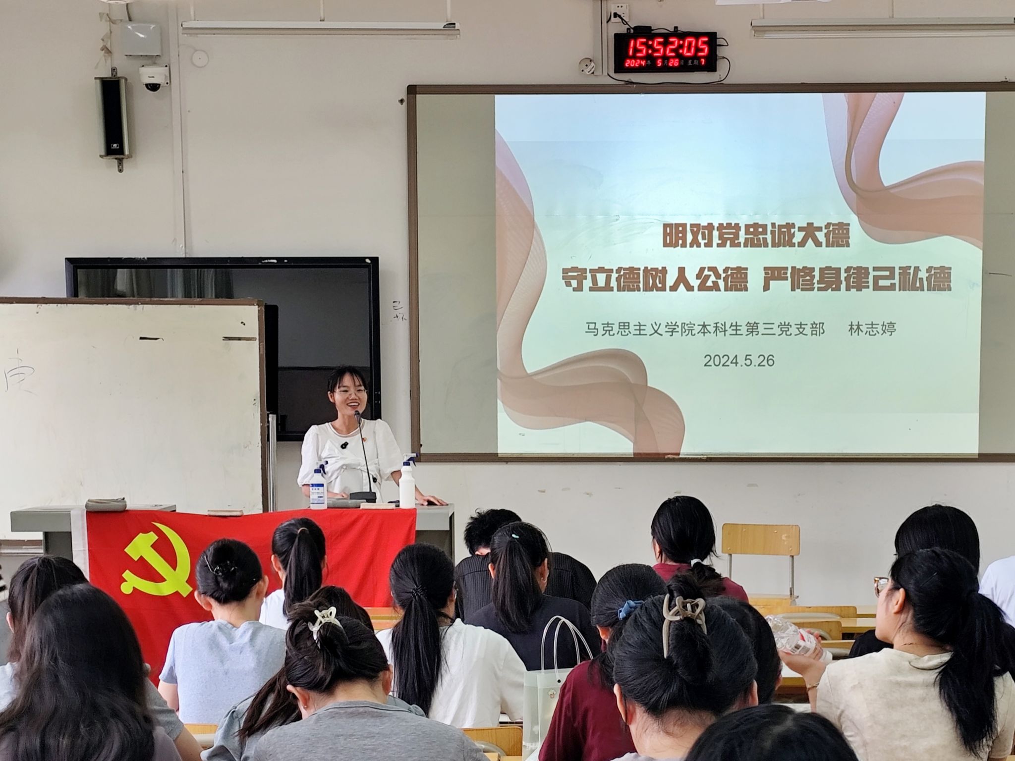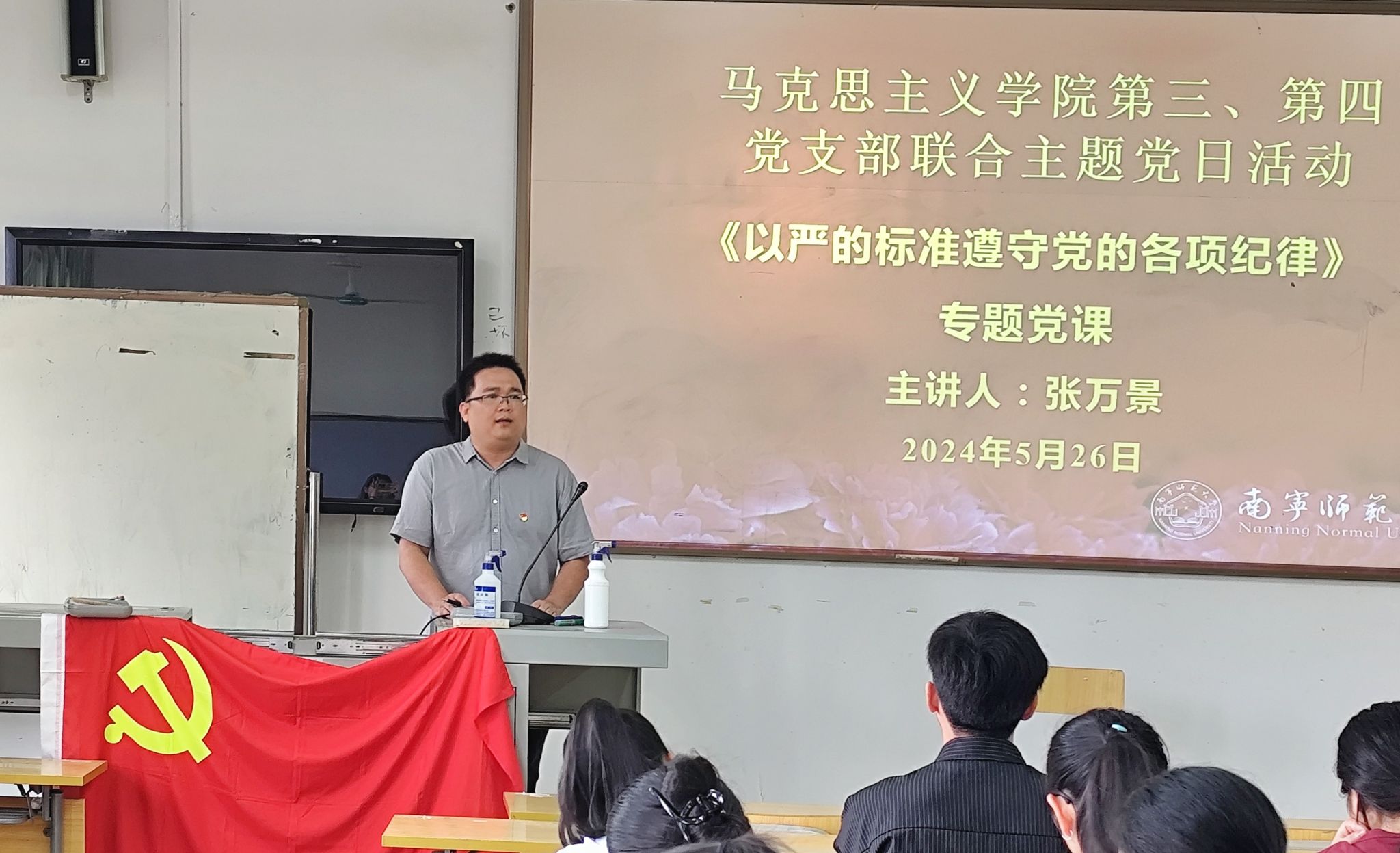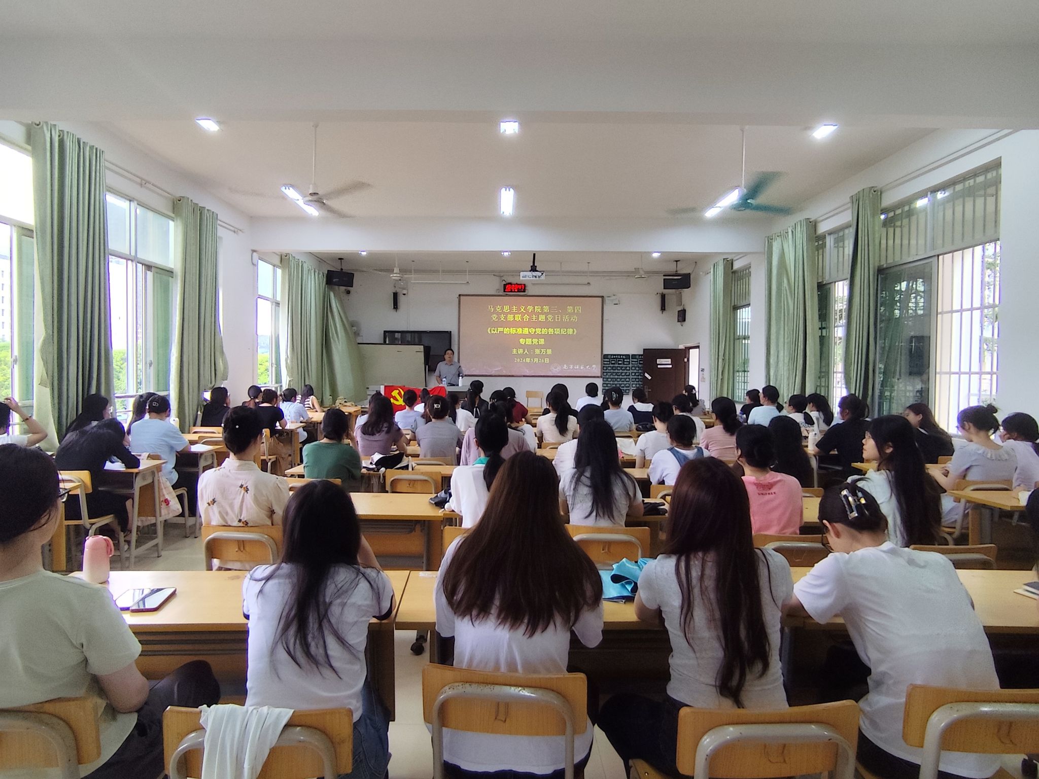 本科生第三、第四党支部于2024年5月26日下午在五合校区五综211教室开展了党支部书记讲纪律党课暨“学党纪,明底线,知敬畏”主题党日活动,参与本次党日活动的有小黄书