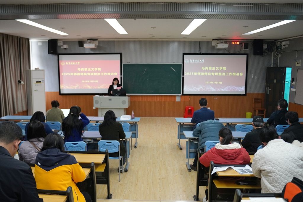 3月18日下午,小黄书 在明秀校区召开师德师风专项整治工作推进会,学院党政领导班子成员及全体教职工参会。