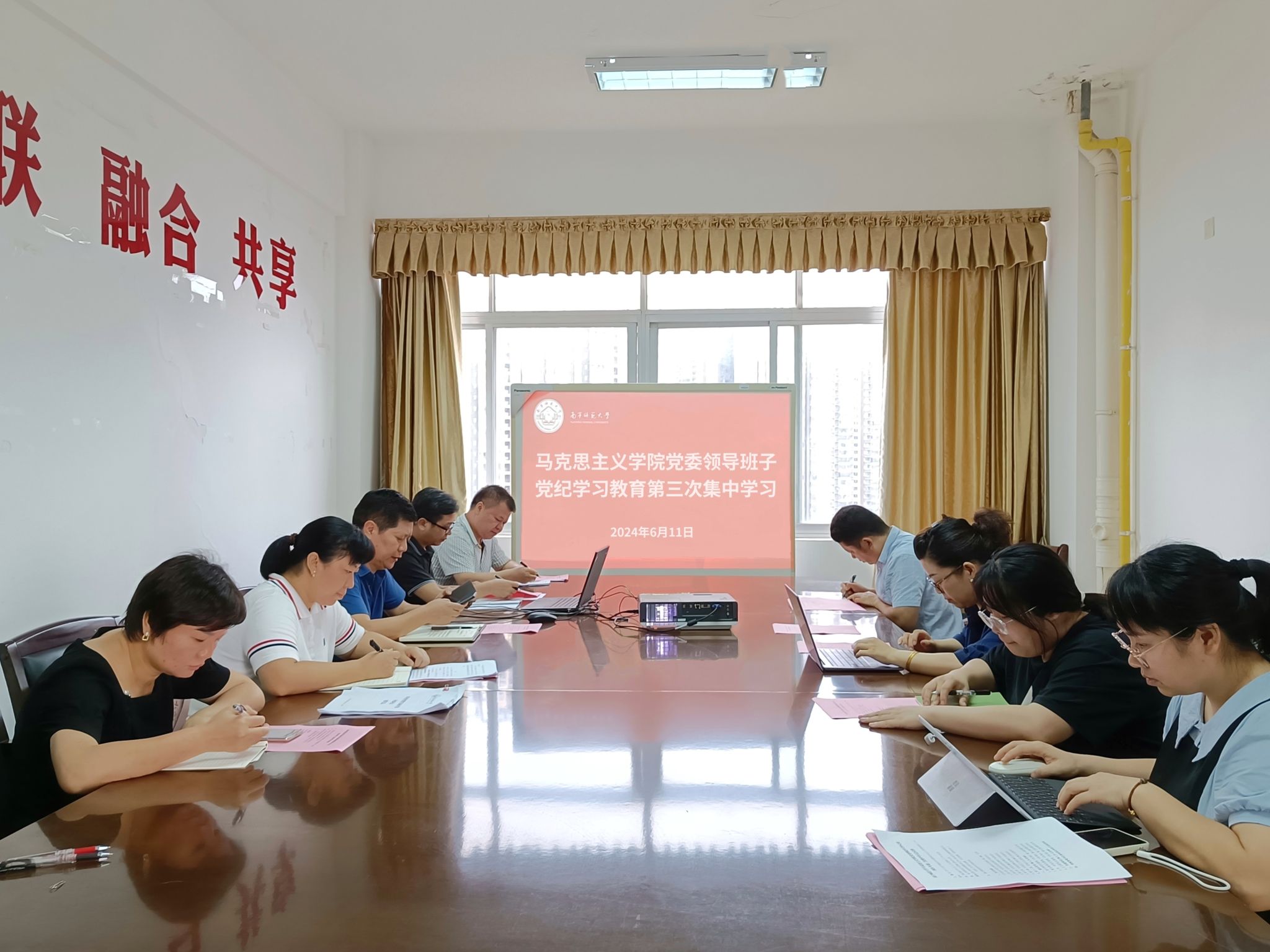 党委领导班子在明秀校区文星楼1209会议室举行党纪学习教育第三次集中学习,专题学习《中国共产党纪律处分条例》第二编“分则”。学院党委委员参加集中学习,院长助理、书记助理、团学负责人等列席学习,会议由学院党委书记李玲同志主持。